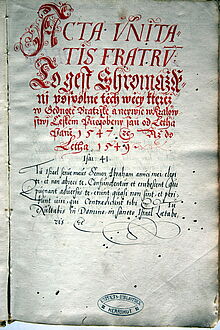 Das Nationalarchiv in Prag ist bestrebt, sowohl die Acta Unitatis Fratrum als auch weitere Dokumente der Brüdergemeine, wie u.a. Briefe von Jan Amos Comenius auf die Liste des UNESCO Weltdokumentenerbes eintragen zu lassen. Eine entsprechende Nominierung reichten Ende November 2025 das Nationalarchiv Prag, die Evangelische Brüder-Unität – Herrnhuter Brüdergemeine – Unitätsarchiv, das Nationalmuseum, die Nationalbibliothek der Tschechischen Republik und das Museum in Mladá Boleslav gemeinsam ein. The National Archives in Prague is seeking to have the Acta Unitatis Fratrum and other documents of the Moravian Church, such as correspondence of Jan Amos Comenius, listed on the UNESCO Memory of the World Register. A joint nomination was submitted at the end of November 2025 by the National Archives Prague, the Ev. Brüder-Unität – Herrnhuter Brüdergemeine – Unitätsarchiv, the National Museum, National Library of the Czech Republic, and the Mladoboleslavsko Museum. |