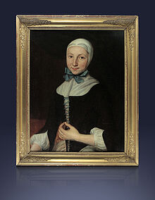 Im November 2025 konnte das Unitätsarchiv bei einer Auktion ein Gemälde ersteigern, das die Gemäldesammlung ergänzt. Möglich wurde dies durch die finanzielle Unterstützung aus dem Testament Gerd Menzel. Es handelt sich um ein Porträt der Louise Sophie von Danneskiold in Herrnhuter Tracht als verheirateter Schwester. Das gerahmte Ölgemälde stammt aus der Mitte des 18. Jh. Leider konnten bisher keine genaueren Angaben zu dieser Person und deren Beziehungen zur Brüdergemeine ermittelt werden. In November 2025, the Unity Archives was able to purchase a painting at auction to add to its collection. This was made possible by financial support from Gerd Menzel's will. It is a portrait of Louise Sophie von Danneskiold in Herrnhut traditional dress as a married sister. The framed oil painting dates from the mid-18th century. Unfortunately, no precise details about this person and her exact relationship to the Moravian Church have been found to date. |
